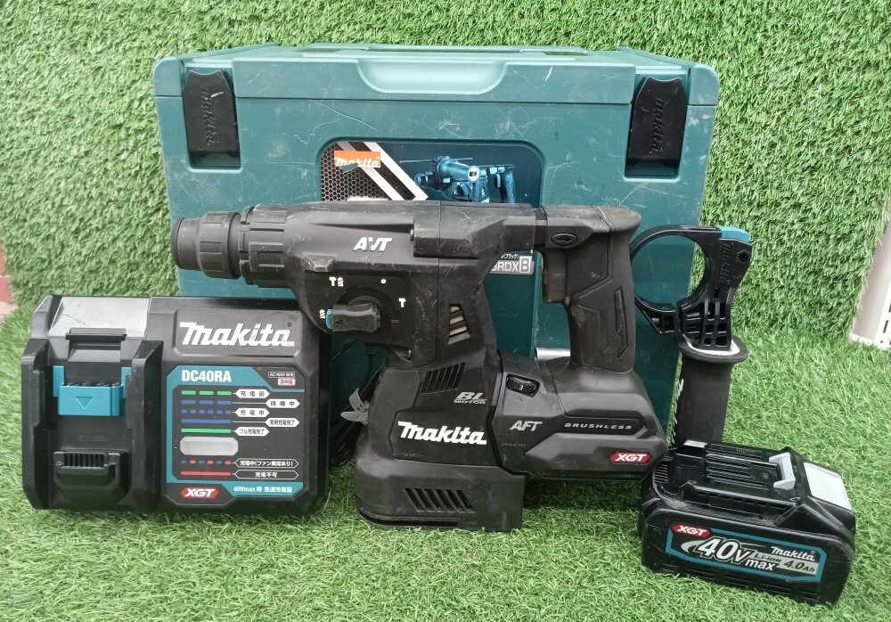 > 中古品 makita マキタ 28mm 40Vmax 充電式ハンマドリル + バッテリー 1個 + 充電器 + ケース セット HR001GRDXB