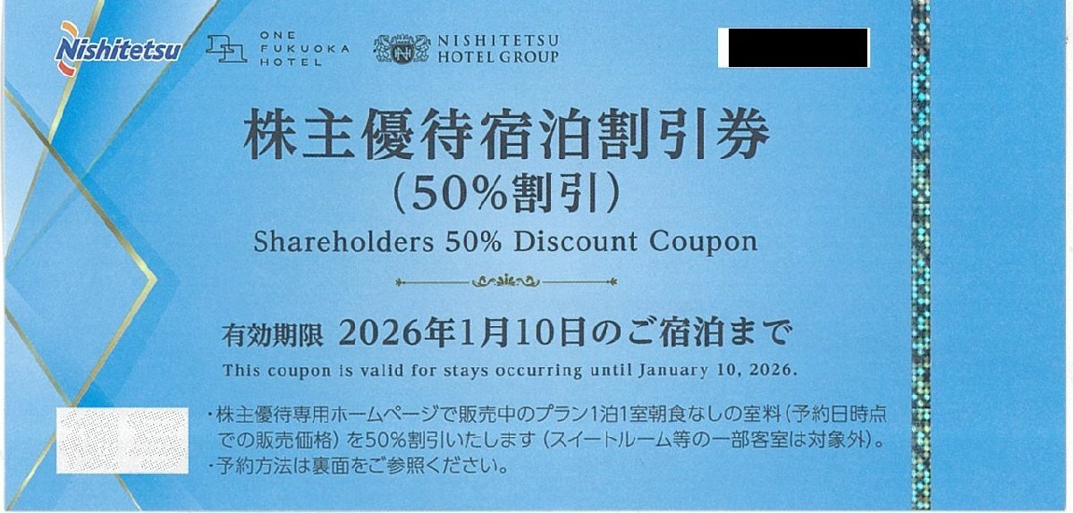 - 甲南☆西日本鉄道☆株主優待宿泊割引券(50%割引)☆西鉄グランドホテル ソラリア西鉄ホテル 西鉄イン福岡 他☆2026.1.10【管理4500】