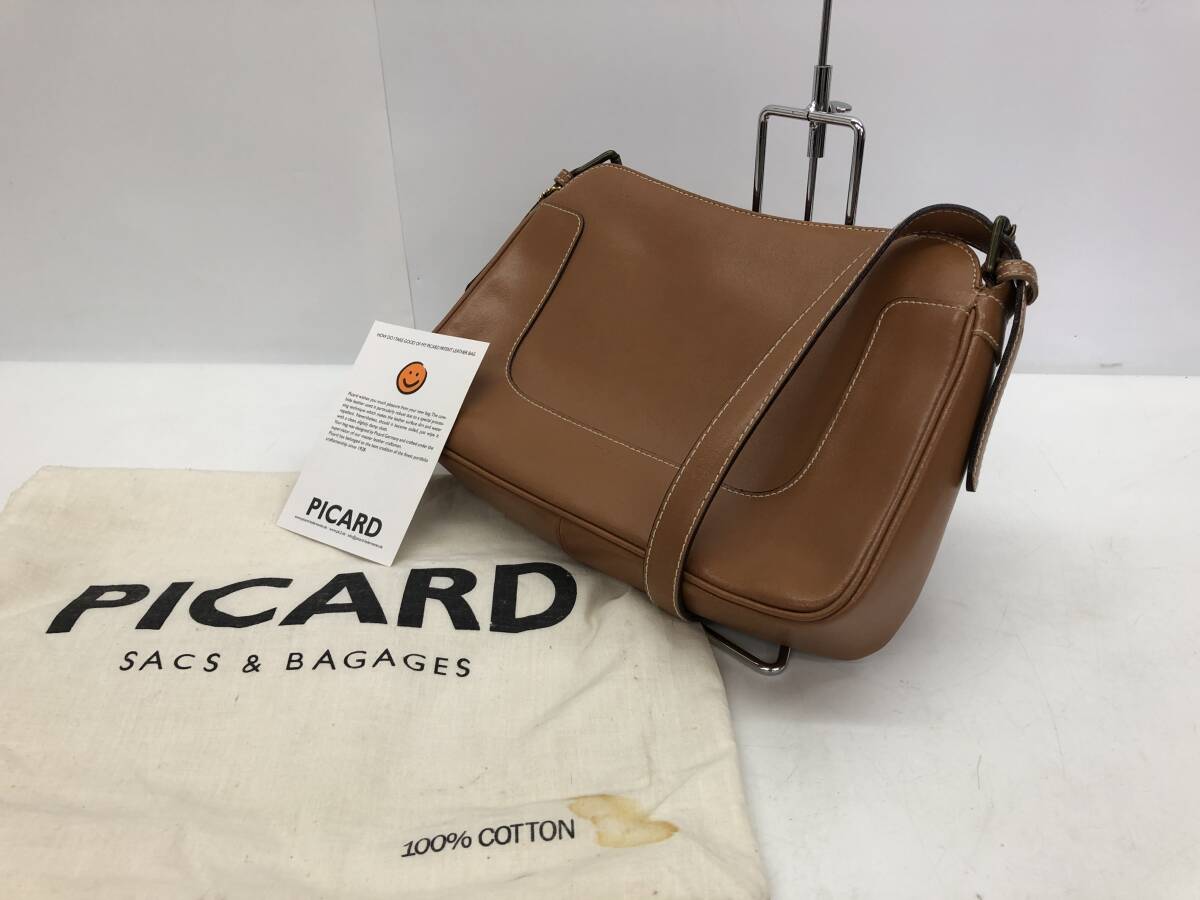 - PICARD ピカード バッグ ショルダーバッグ 斜め掛け 肩掛け ブラウン チャーム付き ロゴ レディースバッグ 女性用 保管袋付き