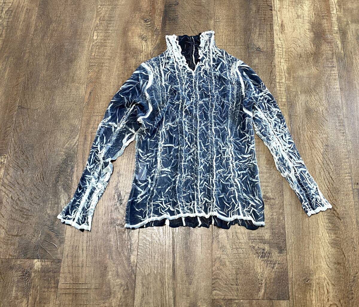 - 福祉バザー トリムシーム★シースルーしわ加工カットソーM