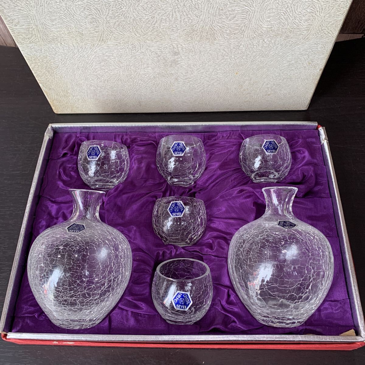 > (TUJ005)SEYEI OHARA CRYSTAL 酒器セット 酒器 徳利 お猪口 セット TH とっくり おちょこ 中古未使用品?