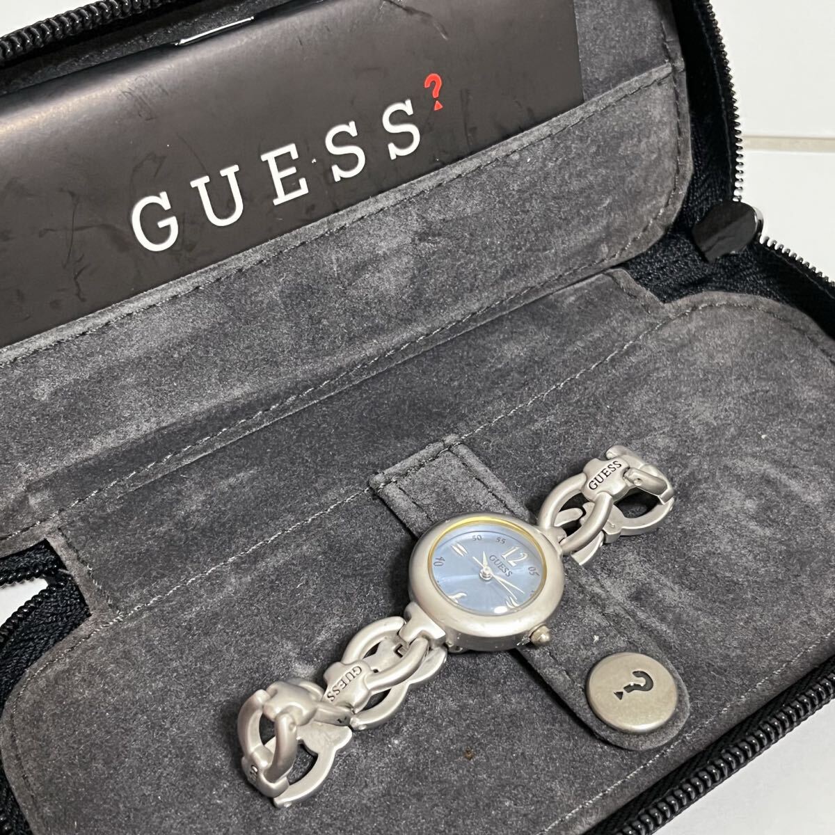 > 和851A★ ケースあり GUESS ゲス クォーツ 腕時計 ウォッチ 3針 ブルー メタルバンド レディース
