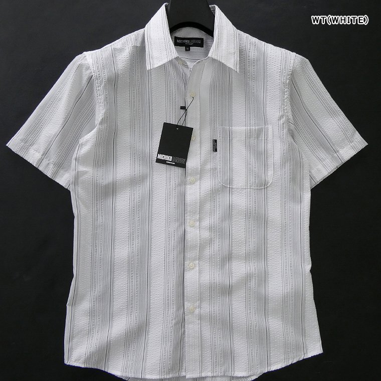 - 新品 ミチコロンドン 25年春夏 ストライプ シアサッカー 半袖 シャツ M 白【ml7m-h152_WT_M】 MICHIKO LONDON ドライ 吸水速乾 清涼 メンズ