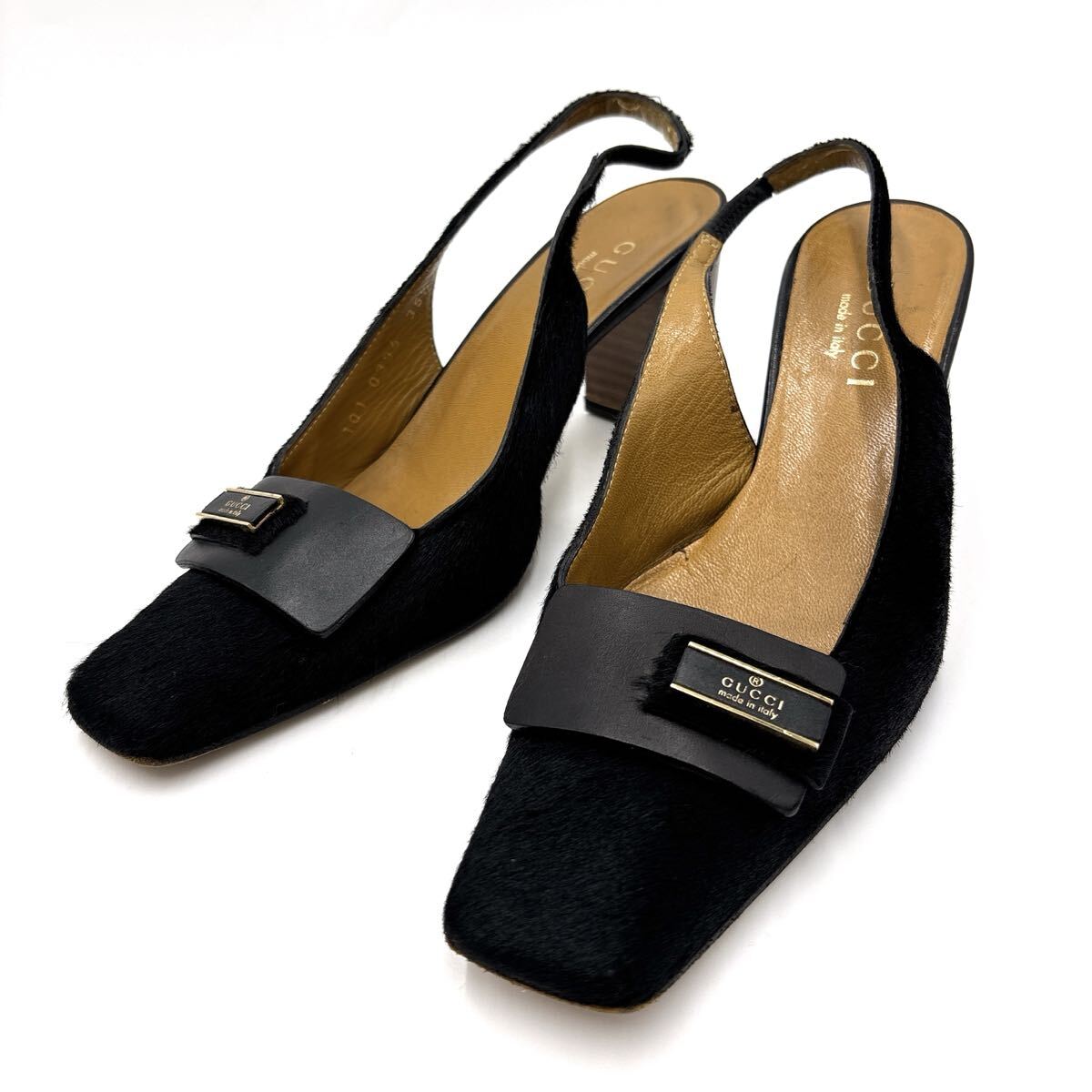 > N * 良品 イタリア製 '高級感溢れる' GUCCI グッチ 本革 ハラコレザー バックストラップ / ヒール パンプス 35.5C 22~22.5cm レディース