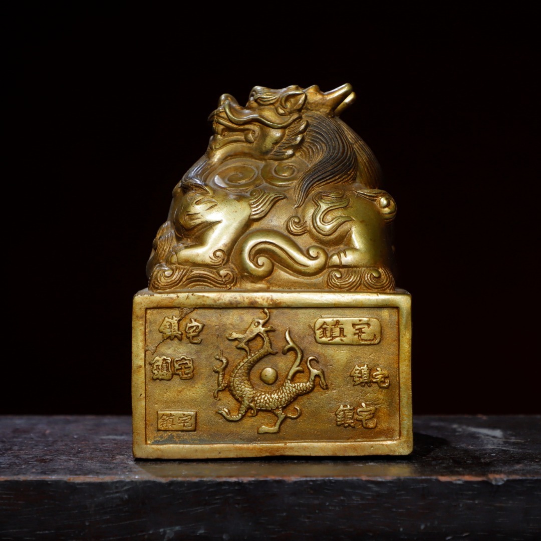 - 【仁】『銅製・塗金・神獣印章・宗教・仏教古美術・供養品』極細工 古董品 中国古玩 古美術 古美味 時代物 旧家蔵出