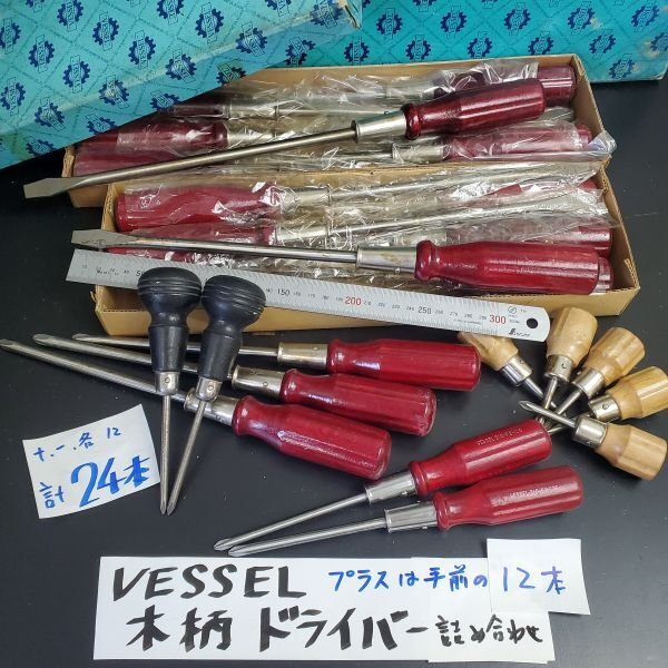 > 【アウトレット品】 VESSEL 木柄 +- ドライバー 詰め合わせ 計24本セット プラス マイナス各12 -は200、250㎜ 工具 ベッセル sp-024-850