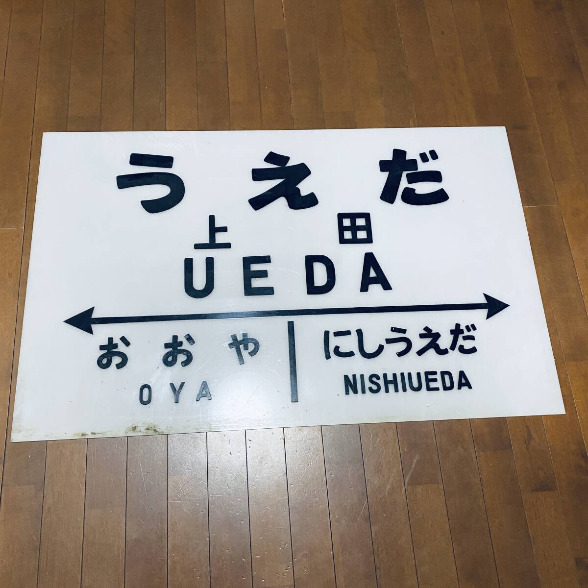 > 250926【駅名看板】鉄道 うえだ 上田 しなの鉄道線 激レア 実物鉄道 電車 レトロ 駅名標 行先案内板 ホームサイン 駅看板 約110*70cm