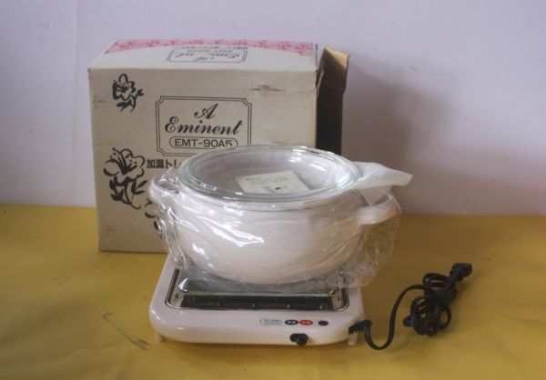 - 未使用品 加温トレー&ジャンボカレー 卓上保温ヒーターとガラスの蓋付きホーロー両手鍋/27N9.18-7