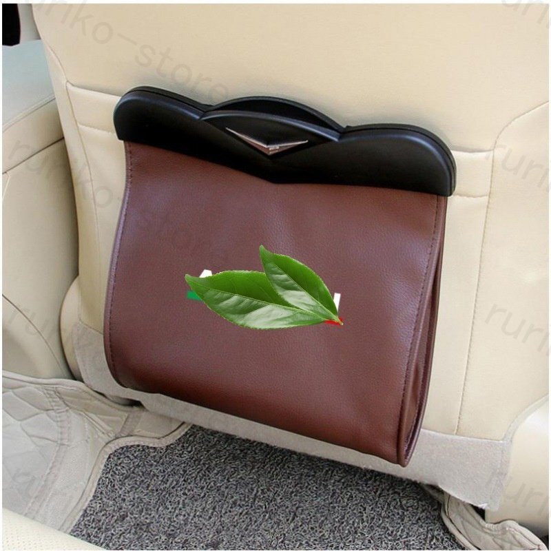 - ゴミ袋 アバルトABARTH車用シートバック収納ポケットレザー製1P 磁気付き LEDライト アクセサリー(ブラウン)