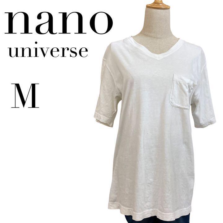 - 人気 ナノユニバース nano universe 半袖Vネックカットソー Tシャツ ポケット ユニセックス ホワイト M