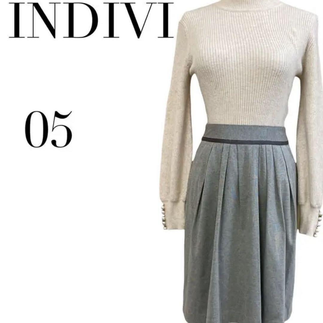 - 人気 インディヴィ INDIVI グリーングレー系 フレアスカート オンオフ兼用 オフィス タック 05 XS