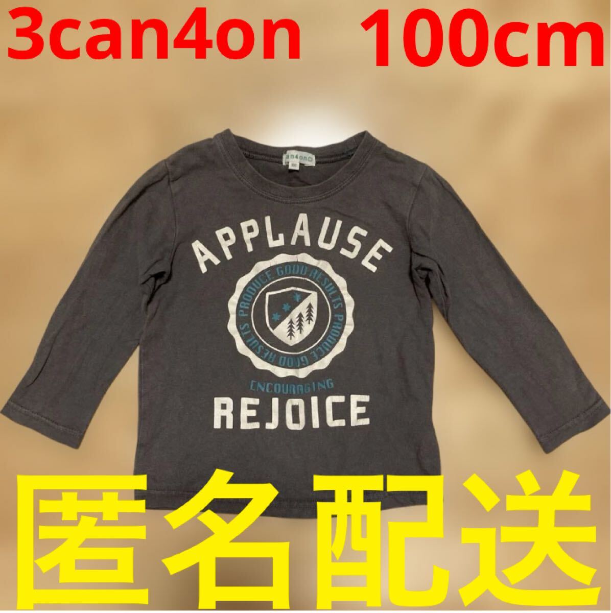 - グレー 長袖カットソー 100cm 3can4on 男の子用 3歳 4歳 幼稚園 サンカンシオン トップス キッズ 子ども服 ロングTシャツ ロンT 薄手