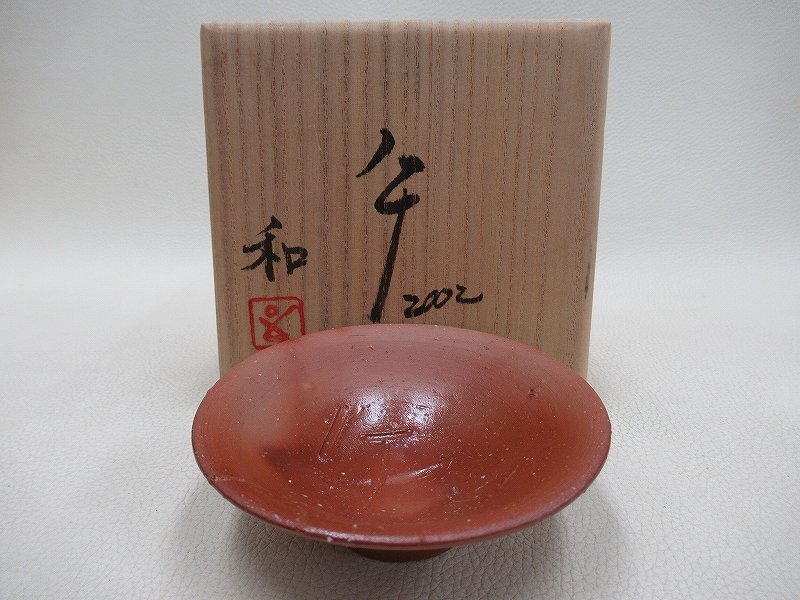 D2849 藤原和 備前焼 午 刻文 盃 2002 酒盃 酒杯 酒器 共箱