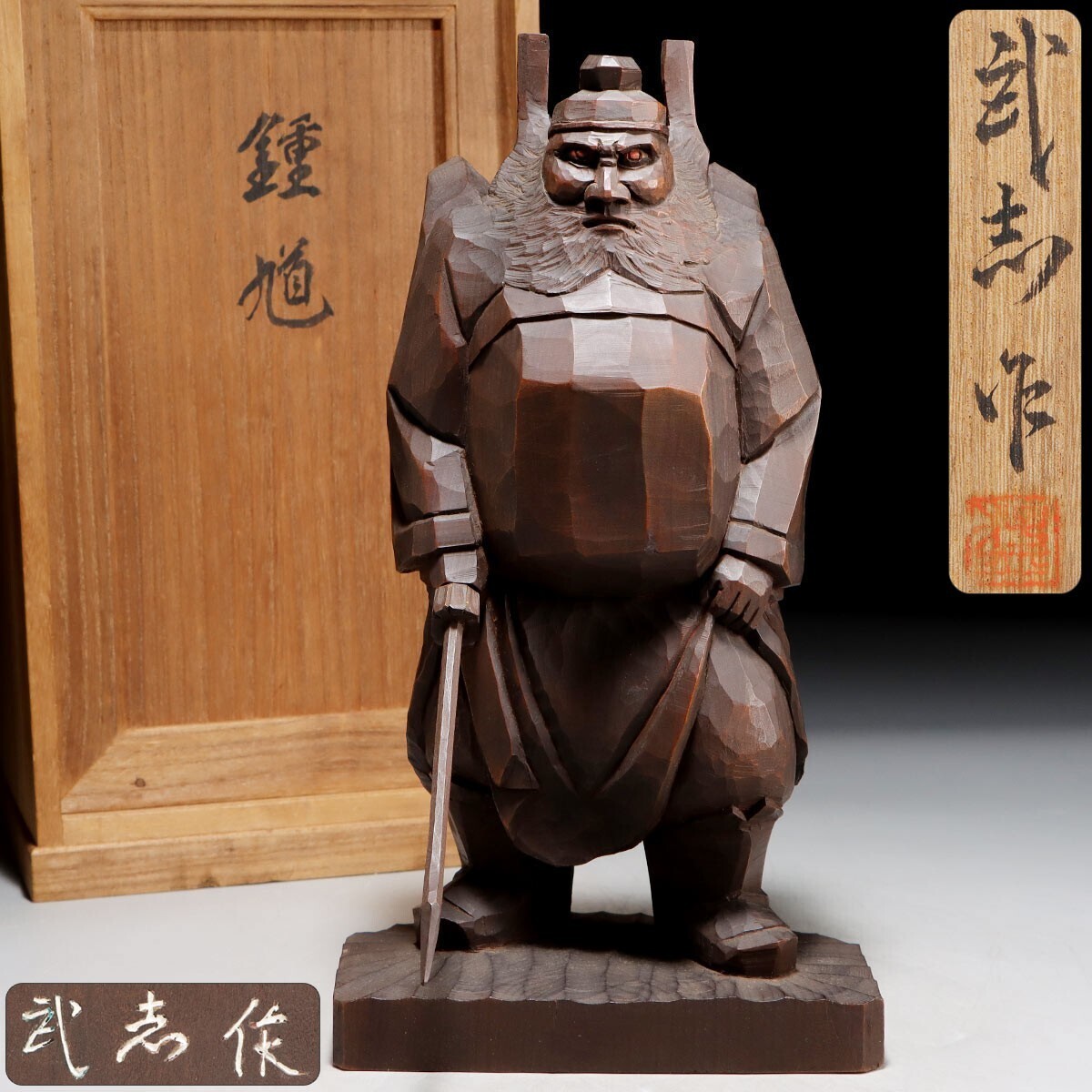 彫刻美術【武志作】 木彫 「鐘馗」 人物像 置物 共箱 の出品です。