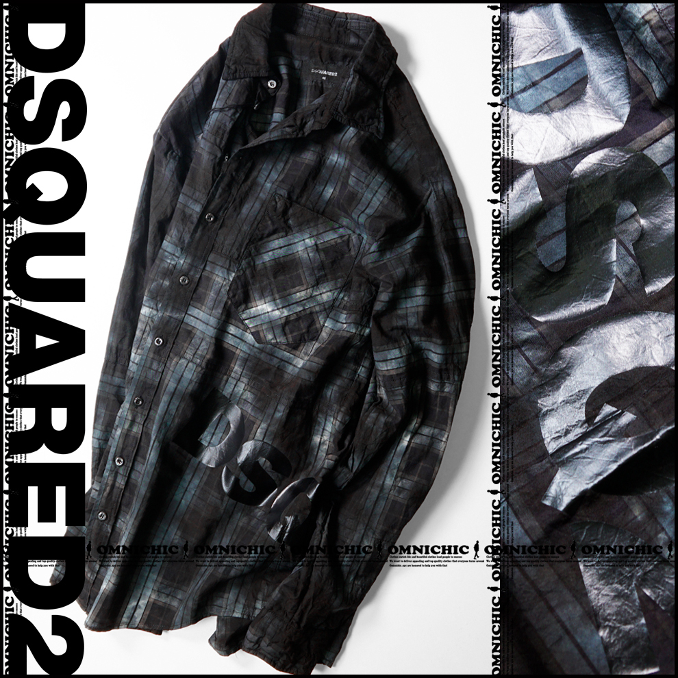 > これぞ拘りのD2贅沢盛■新品113,300円【DSQUARED2】ディースクエアード/後染め/パッチワーク/ロゴプリント/ダーティーチェックシャツ48