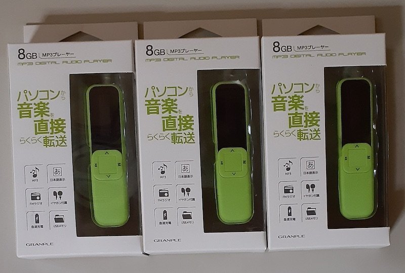 - 6767 未使用 未開封 3個 FMラジオ付ポータブルオーディオプレーヤー MP3GL-GR 8GB グリーン GRANPLE パソコンから音楽を直接らくらく転送