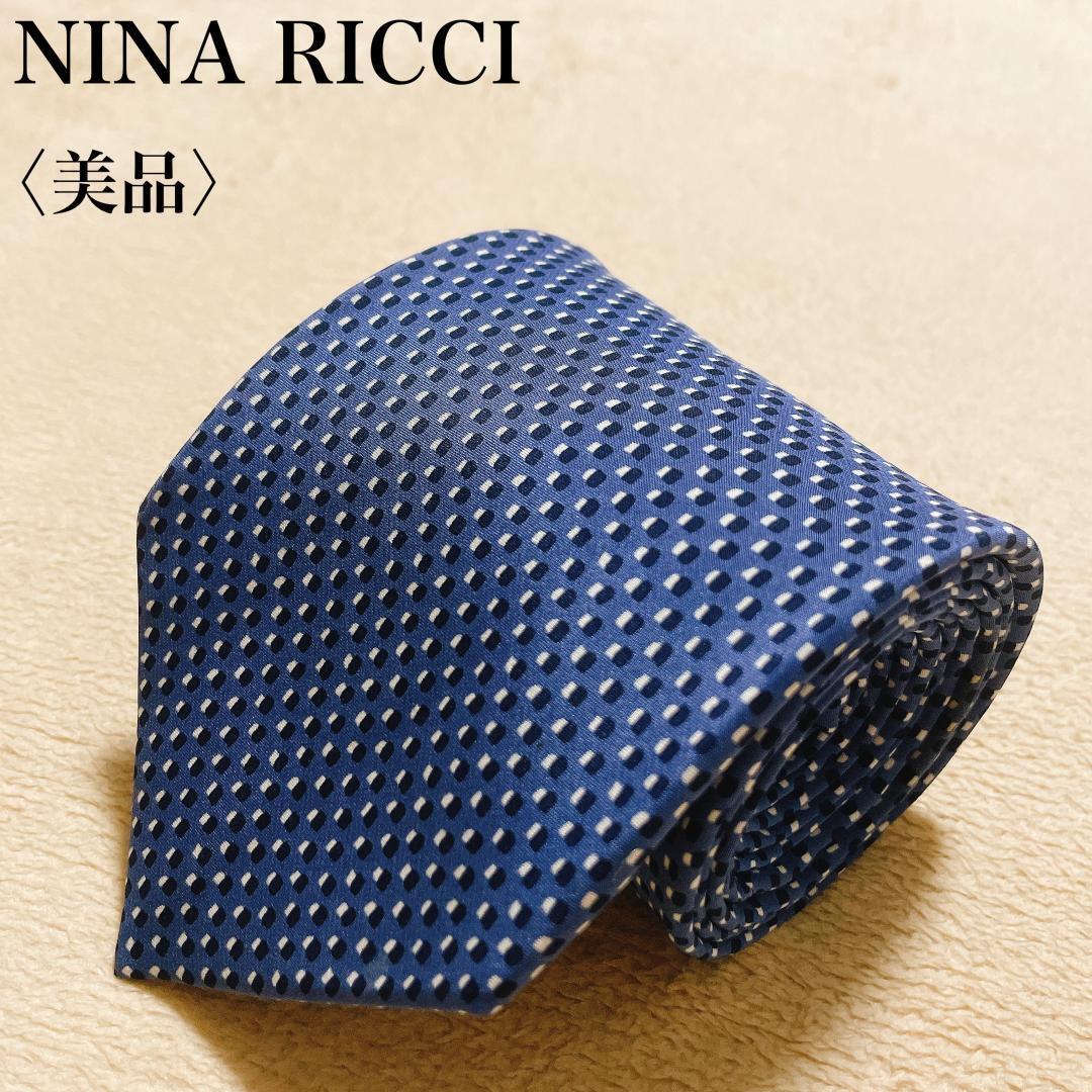 > 【美品】NINA RICCI ニナリッチ ネクタイ シルク 青 ドット柄 ヴィンテージ 上品 日本製 ブルー ビジネス スーツ パーティー 高級感 4-37