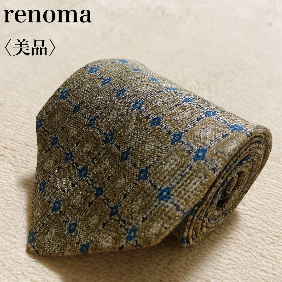 > renoma レノマ ネクタイ シルク イタリア製 ヴィンテージ 幾何学柄 総柄 レトロ ビジネス スーツ パーティー 光沢 肌触り 高級感 4-38