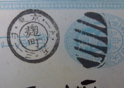 - 小判1銭はがき 東京支局 2枚組 麹町ボタ印 (黒印と茶色) 使用済 美品 JPA-40-30-8