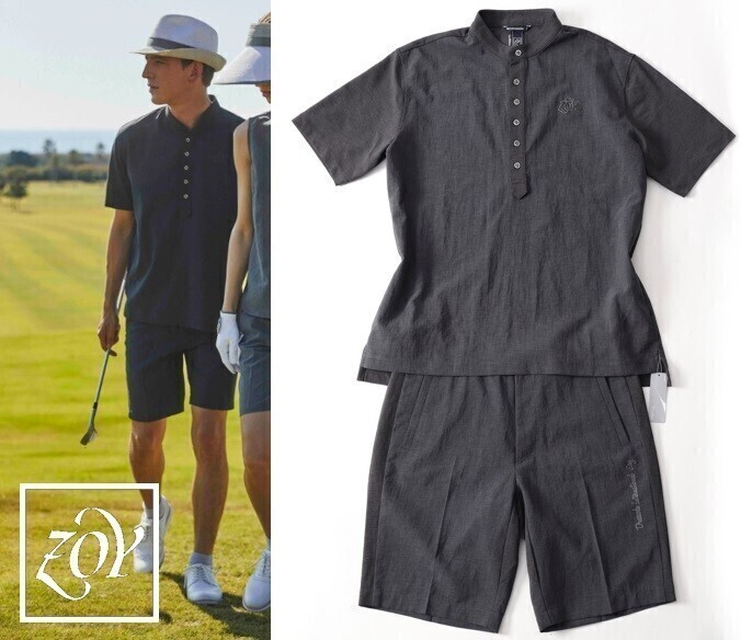 > ★正規★ZOY ゾーイ★DOT MESH COOL ヘンリーネック半袖ポロシャツ&Thick&Thin Stretch ショートパンツ 上下セットアップ★チャコール灰