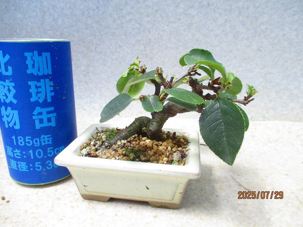 - [緑の市場] ミニ盆栽 カリン (72311白釉長方鉢)全高:10㎝【小型送料】*同梱包対応「まとめて取引」厳守*60サイズ送料明記