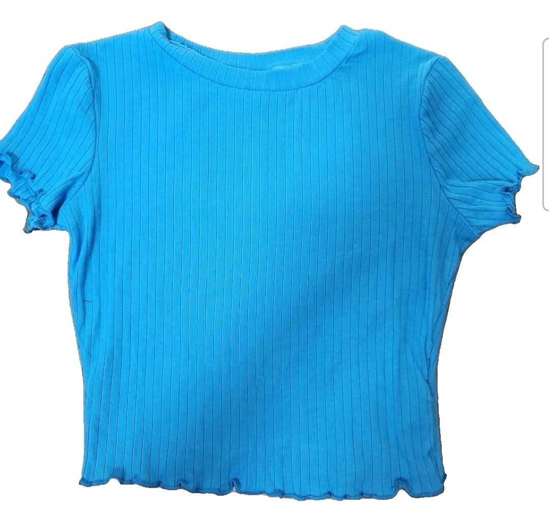 - SHEIN 青 リブ編み フリル袖 Tシャツ XS