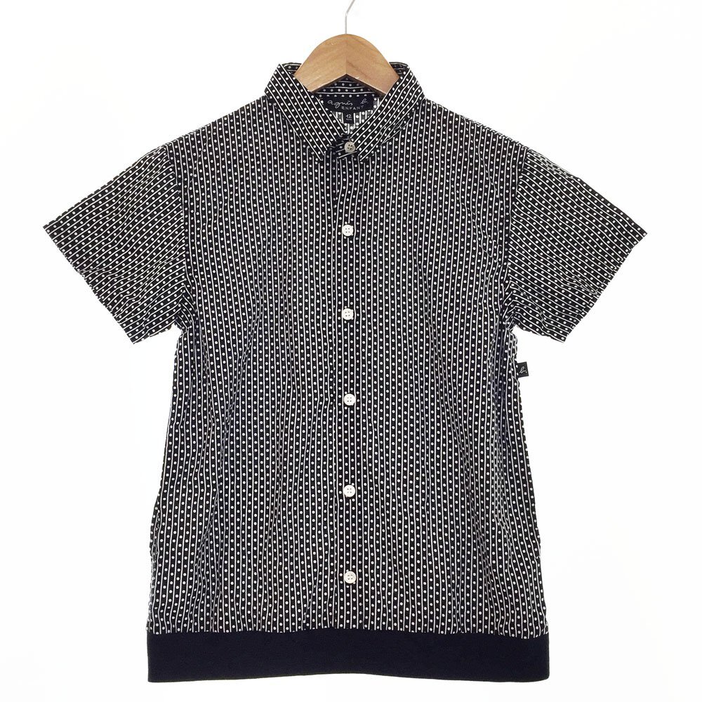 - ★未使用 アニエスベー agnes b. ENFANT 半袖 総柄シャツ サイズ12A 150cm キッズ レディース ブラック×ホワイト CE23IZ44 1BA/93876