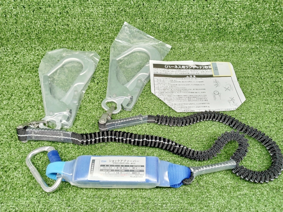 - 未使用 プロップ 蛇腹式 二丁掛 ランヤード 100kg対応 製造 22年 PS-LWJ6170NB