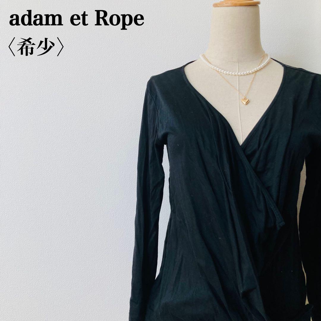 - 希少 アダムエロペ adam et Rope 変形Vネックカーディガン ドレープ ストレッチ 黒 ブラック 38M