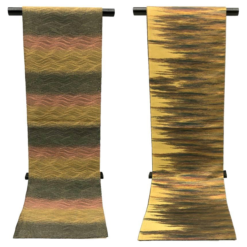 - 京やJ223 正絹 袋帯 帯は博多 正絹之証 金糸 金銀箔 泥染袋帯 ナセン霞 両面織 2WAY 両面使い リバーシブル 正装 セミフォーマル