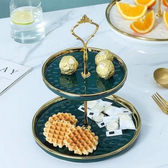 - 2段ケーキスタンド アフタヌーンティーセット 陶磁器 フルーツ皿 スイーツ皿 デザート皿