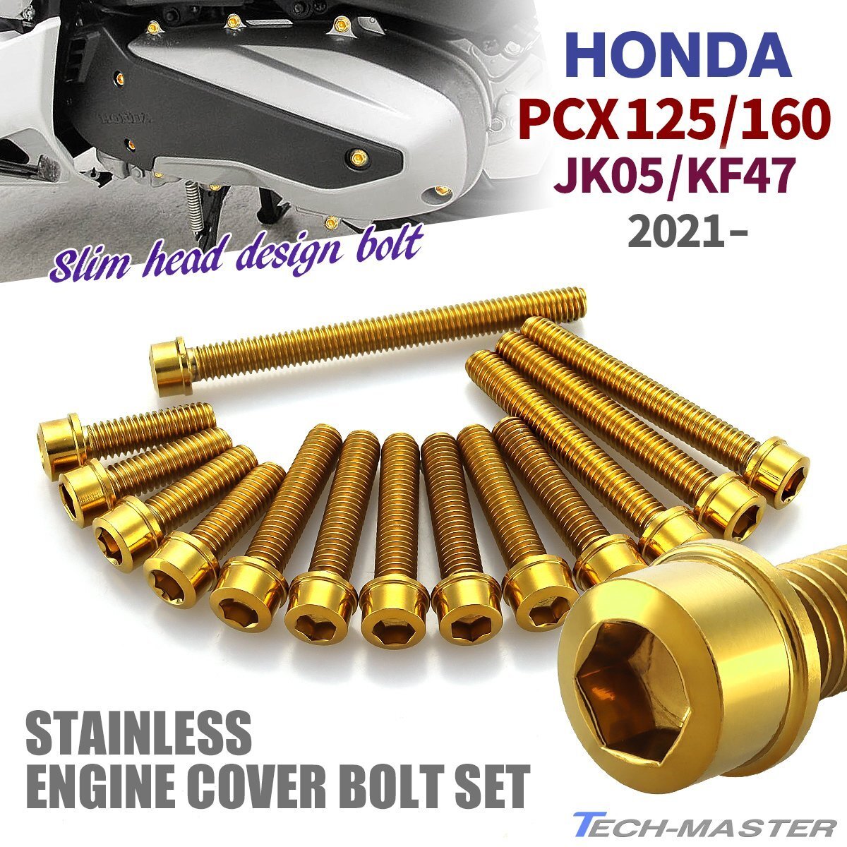 > PCX125 PCX160 JK05 KF47 2021年~ クランクケースカバーボルト 14本セット ステンレス製 スリムヘッド ゴールドカラー TB12092