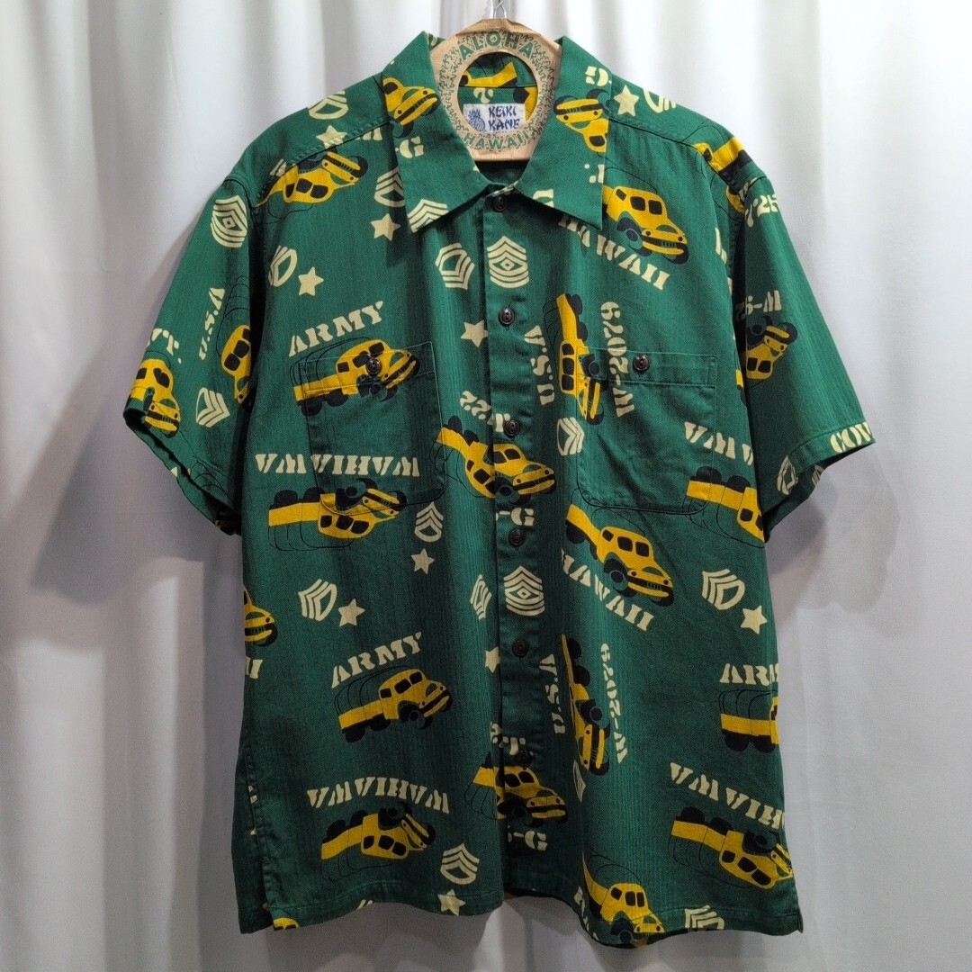 - 【size:XL】未使用ハンガー付 SUN SURF “ARMY VEHICLE” SS39279 東洋 サンサーフ 米軍車両 ヘリンボーン コットン アロハシャツ 半袖