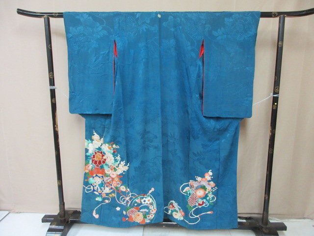 > 1円 良品 訪問着 正絹 着物 和服 和服 アンティーク レトロ 紅絹 花車 四季花 結び紐 お洒落 高級 袷 身丈146cm 裄63cm【夢職】★