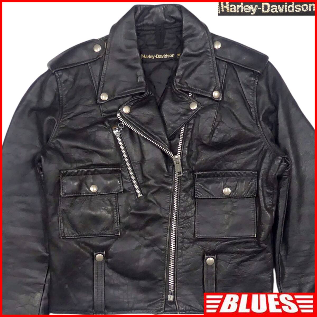 > 即決★HARLEY DAVIDSON★メンズ M ライダースジャケット ハーレーダビッドソン 38 レザー 黒 ブラック 70s ヴィンテージ 本革 本皮