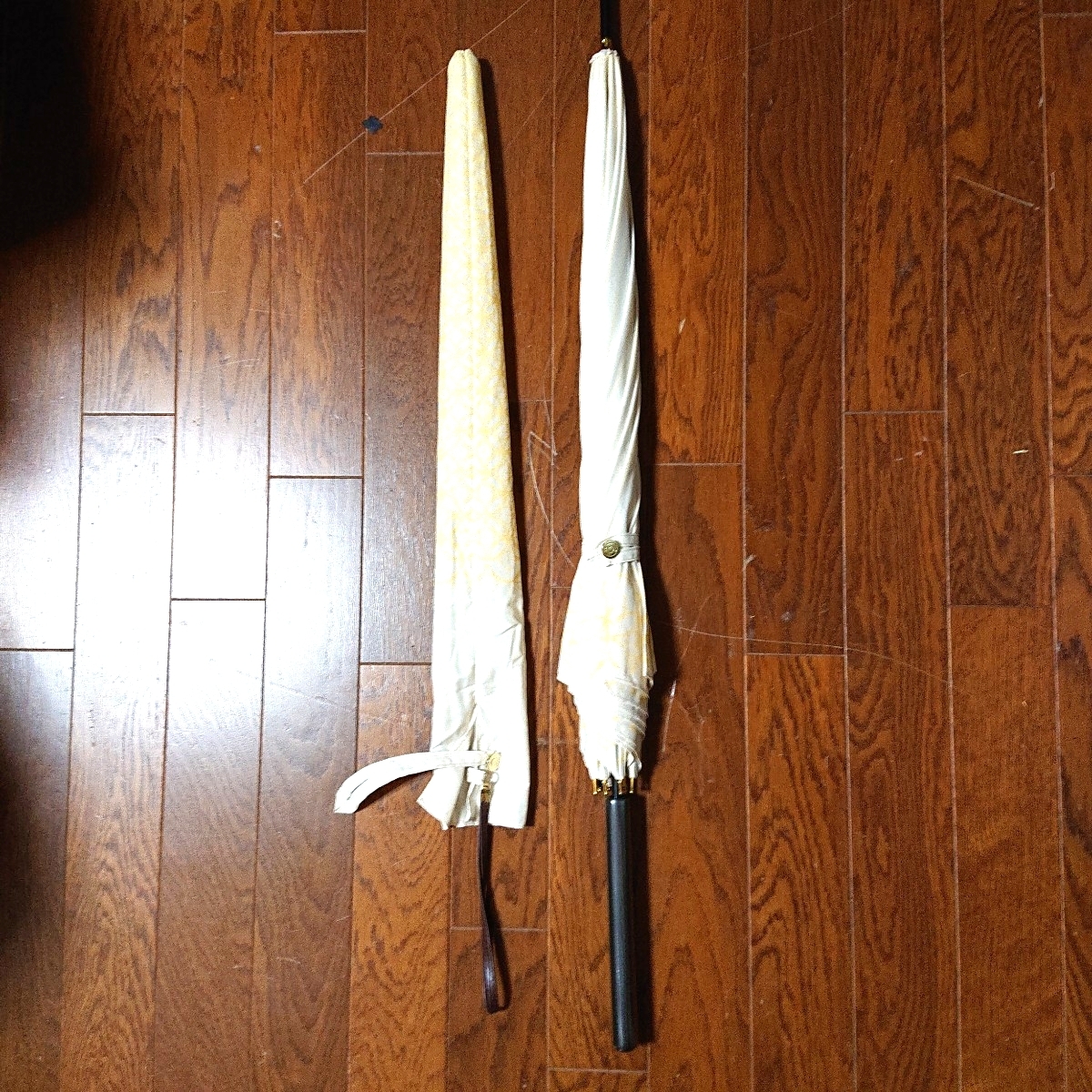 - 【非売品?】POLA 長傘 雨傘 日傘 アンブレラ オフホワイト 金ラメ 幾何学模様 当時物 現状品 ぷらみ1003 13