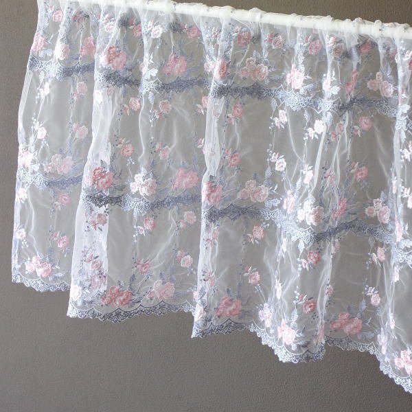 - カフェカーテン おしゃれ レース レースカーテン 45cm 刺繍 カフェカーテン ピンク&グレージュ 送料無料(一部地域除く) won5522