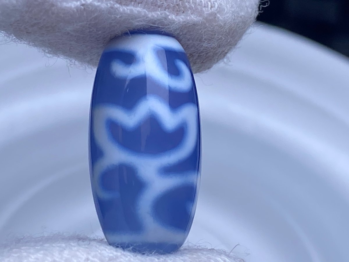 - 即決 0619A034 新入荷★【チベット青玉髄水蓮花天珠】★ 19.8x10mm(新品)