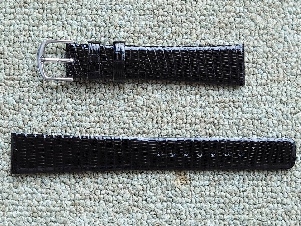 - ロングサイズ■高級本トカゲ革バンド寸長サイズ : 抗菌防臭&撥水加工■時計本体側取付幅18mm尾錠幅15mm黒色■銀色尾錠金具