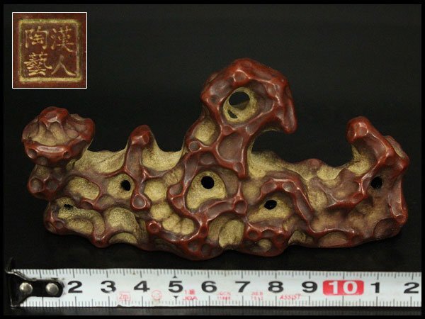 > 【銀閣】中国美術 朱泥 庭岩形 筆架 文房四宝 在印 旧家蔵出 送料無料(HA520)
