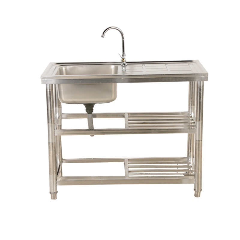 > ■ステンレス製流し台 蛇口水栓/スタンド付き 1槽シンク 食器洗いシンク 野菜シンク 台所 1槽シンク