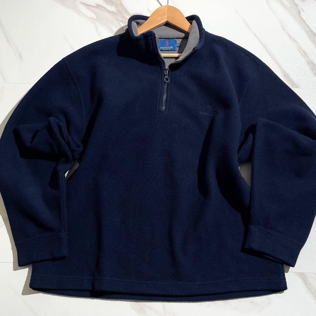 - 【美品/M】MONCLER モンクレール フリースジャケット ハーフジップ ブルゾン ストレッチ メンズ 刺繍 刻印ジップ ネイビー系