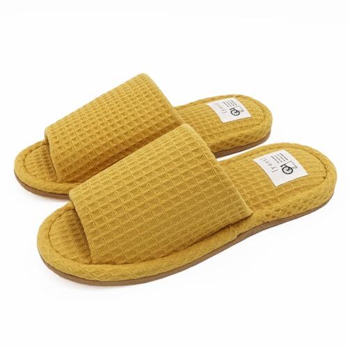 - イエロー カジュアル L オクムラ スリッパ 洗える yoriコットンワッフル 綿100% ふっくら 肌ざわりがいい 履きやすい