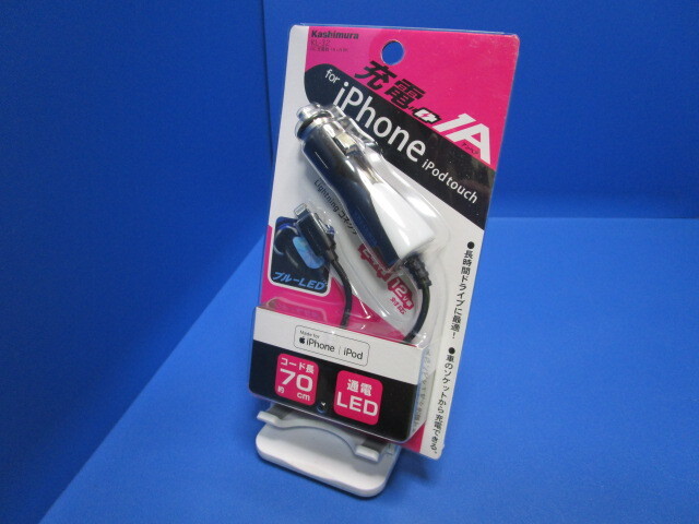 > カシムラ KL-32 シガーソケット式充電器 DC充電器 1A ライトニングコネクタケーブル 車でiPhone/iPodのバッテリーを充電するDC充電器