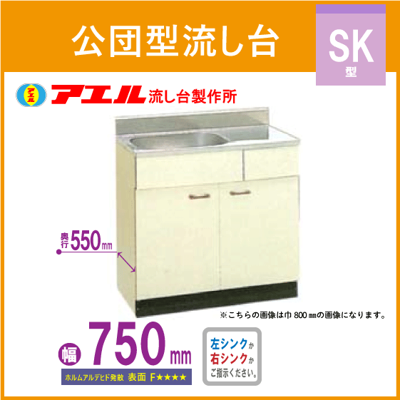 > 公団流し台 75cm SK型 SK-750F アエル流し台製作所