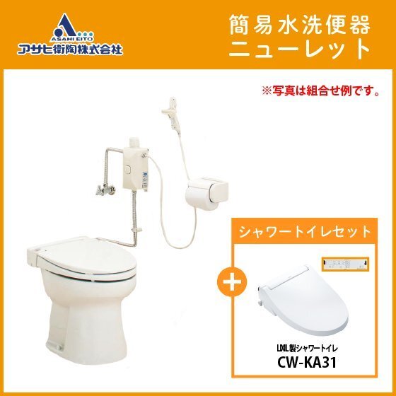 - 簡易水洗便器 簡易水洗トイレ ニューレット(フラッシュバルブ式) シャワートイレ(壁リモコン)セット AF50BN,CW-KA31 アサヒ衛陶 タンクレス