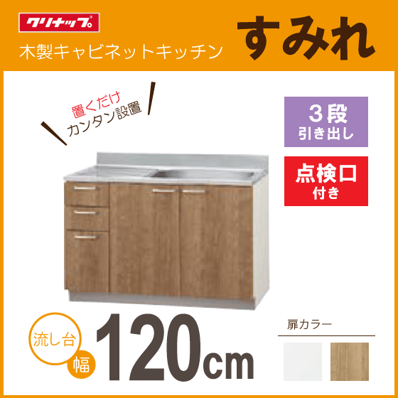 - 流し台(3段引出し) 点検口付き クリナップ すみれ 120cm LAT-120MTL L4B-120MTL LAT-120MTR L4B-120MTR 1200mm★