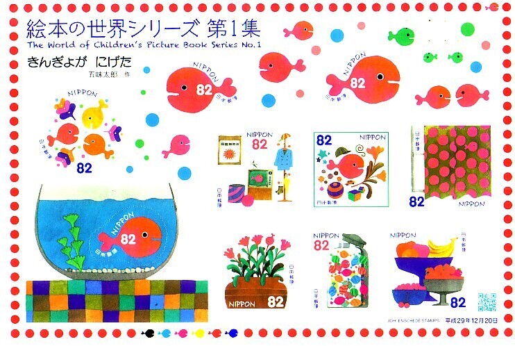 - 「絵本の世界シリーズ第1集 きんぎょがにげた」の記念切手です