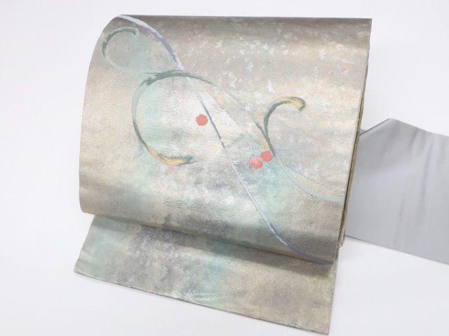 - 《京都一輝堂》リサイクル着物 九寸名古屋帯 お太鼓柄 金糸 正絹 25b09-1733