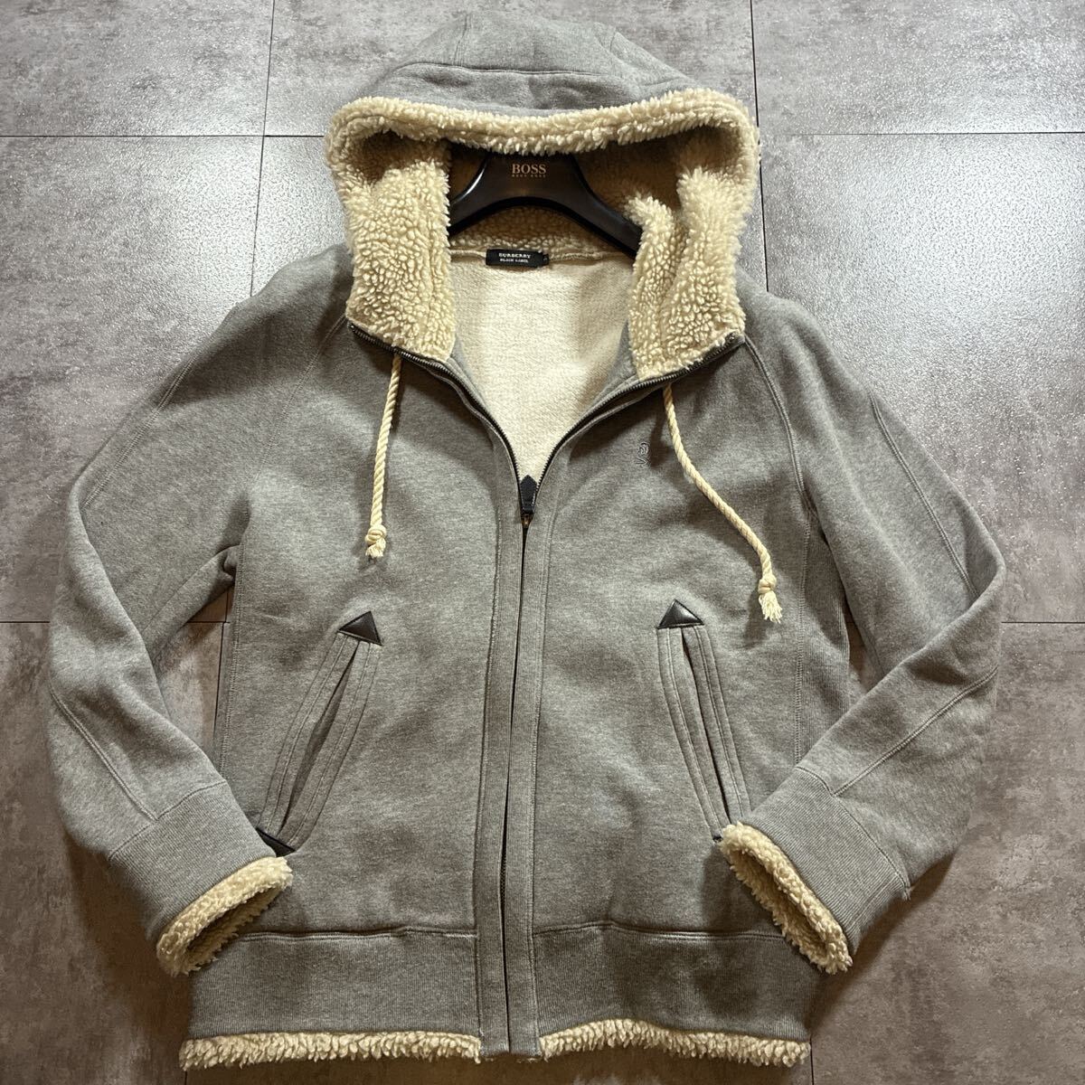 - 【美品・L相当】BURBERRY BLACK LABEL 裏地ボア ジップアップブルゾン パーカー グレー ジャケット バーバリーブラックレーベル メンズ